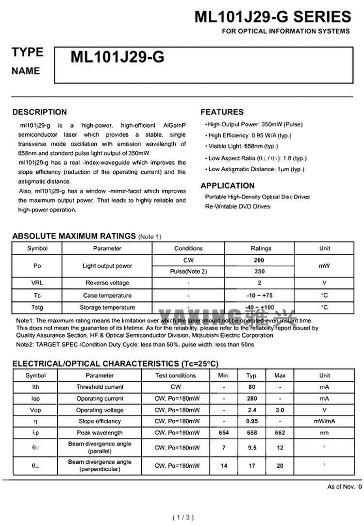 1Pcs Mitsubishi ML101J29-G ML101J29G 658nm 200MW Red Laser Diode High Power To56 Single Mode