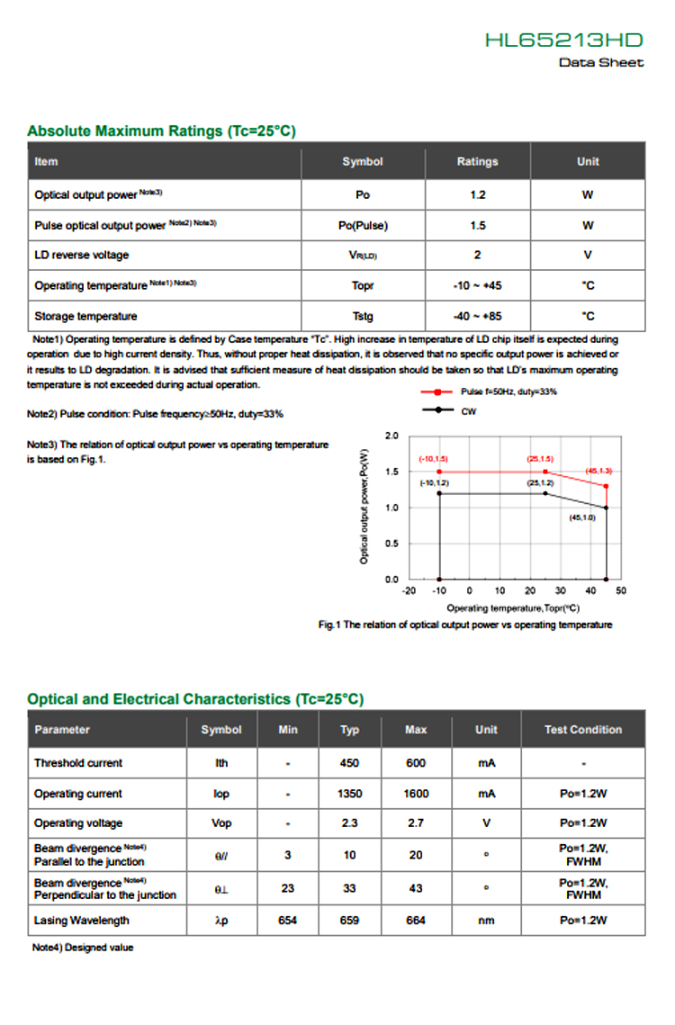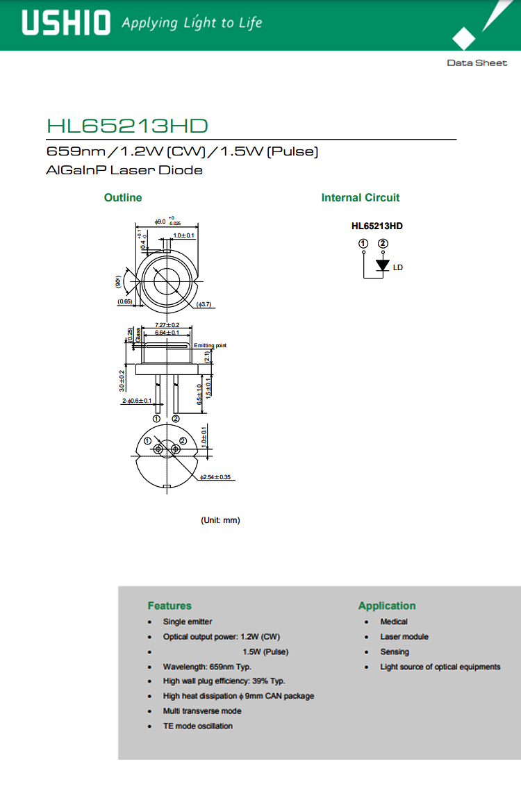 original USHIO 659nm1.2W HL65213HD TO5 red laser diode