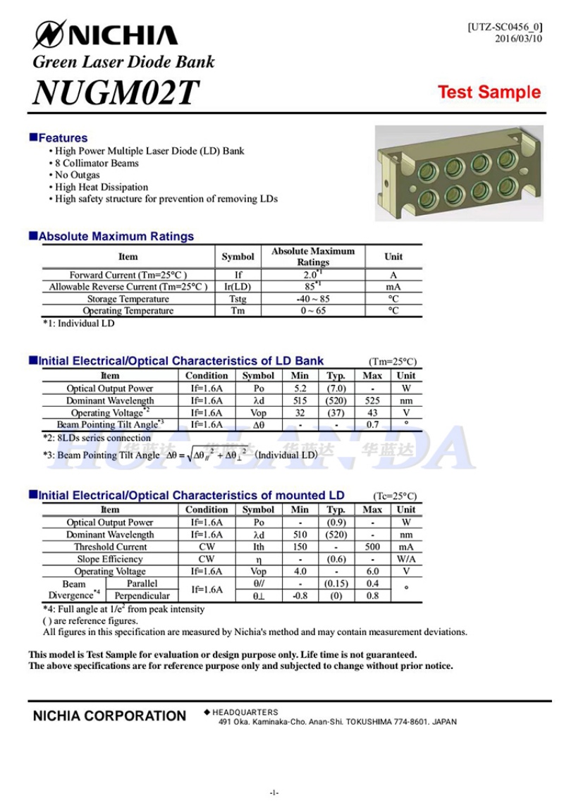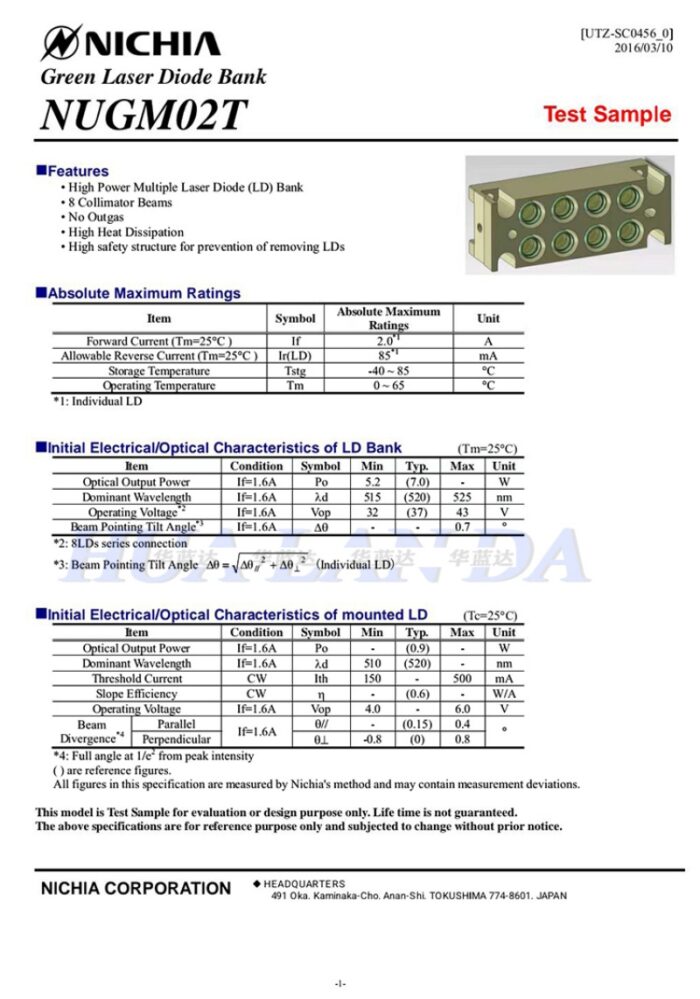Categories: 500-600nm Laser Diode, Array laser diodes, Nichia