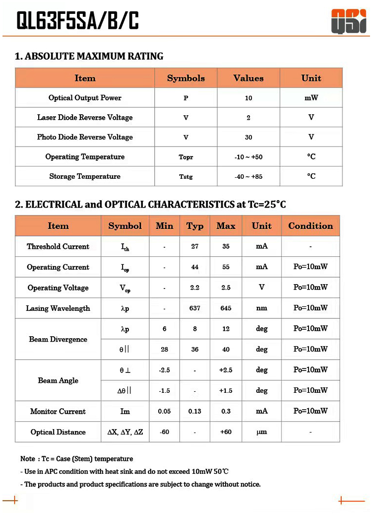 QSI QL63F5FSA 635nm 10mW Red Laser Diode type N with PD