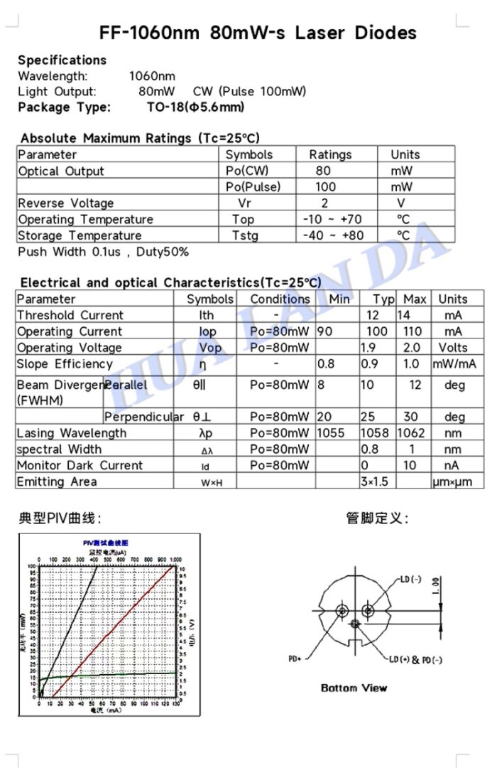 1064nm Laser Diode, TaiWan YouJia, Vpi
